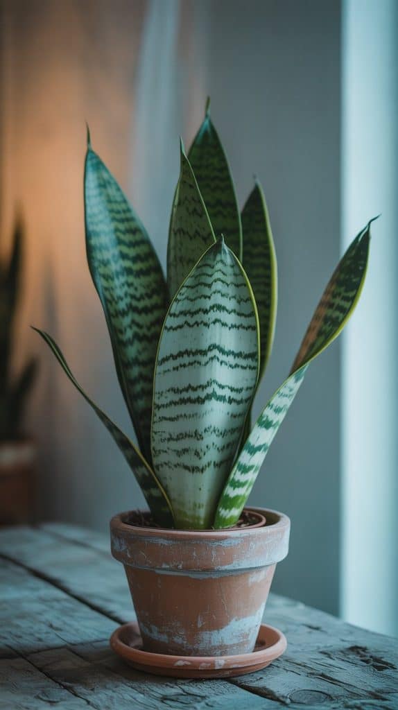 🪴 1. Snake Plant (Sansevieria trifasciata)