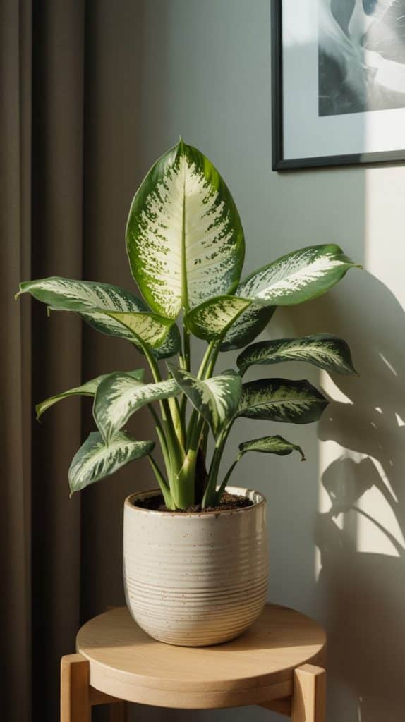 This lush, leafy plant thrives indoors and grows quickly, even in moderate light. Its patterned green-and-cream leaves make a bold statement in any corner.