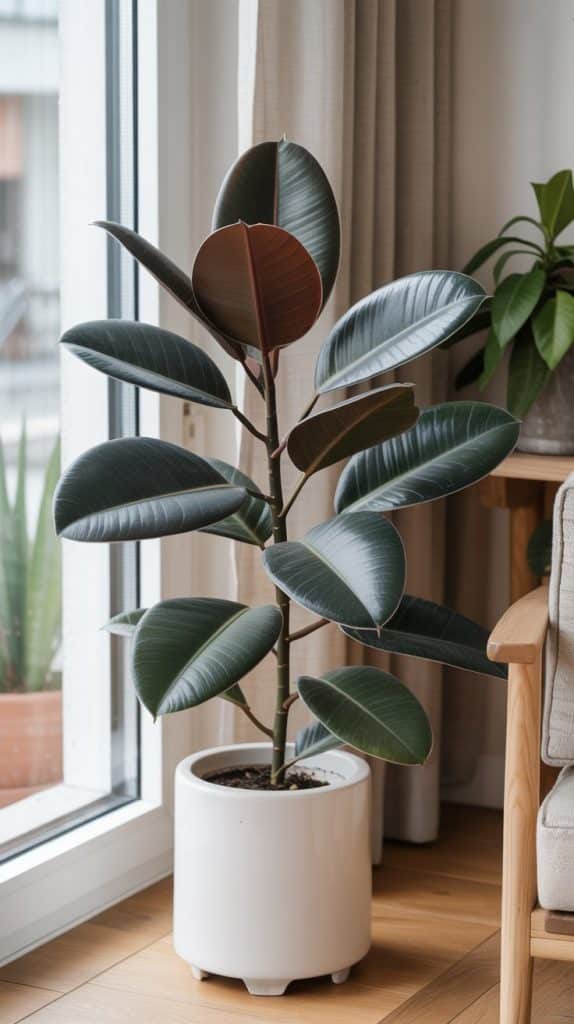 Tough, glossy, and gorgeous! Rubber Plants are resilient and thrive in bright, indirect light but can handle low light too. They don’t need constant watering — in fact, they prefer a bit of neglect.